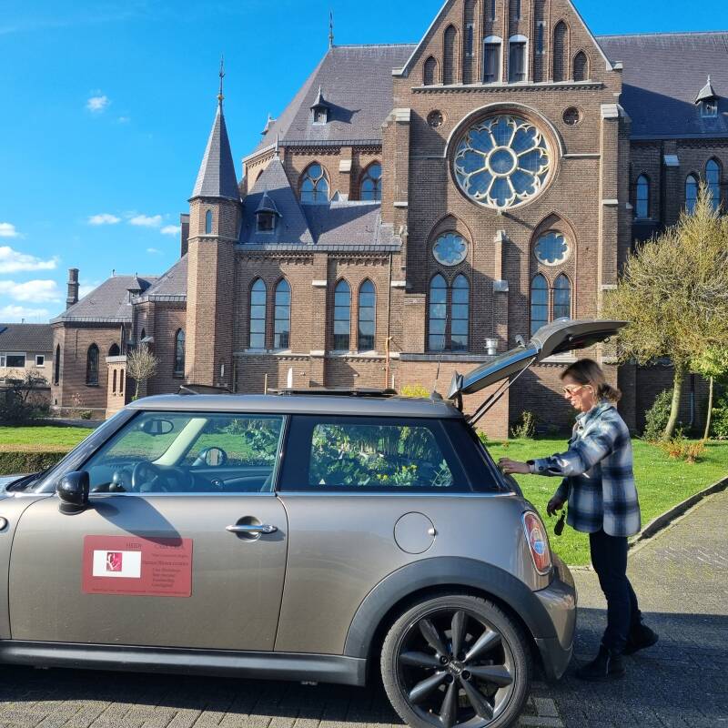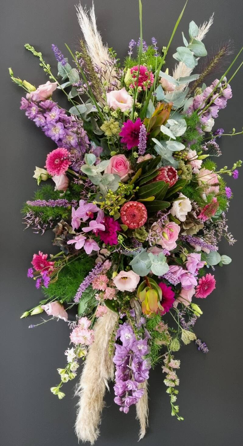 Afscheid met kleur, na de dienst kreeg iedereen een bloemboeket mee.