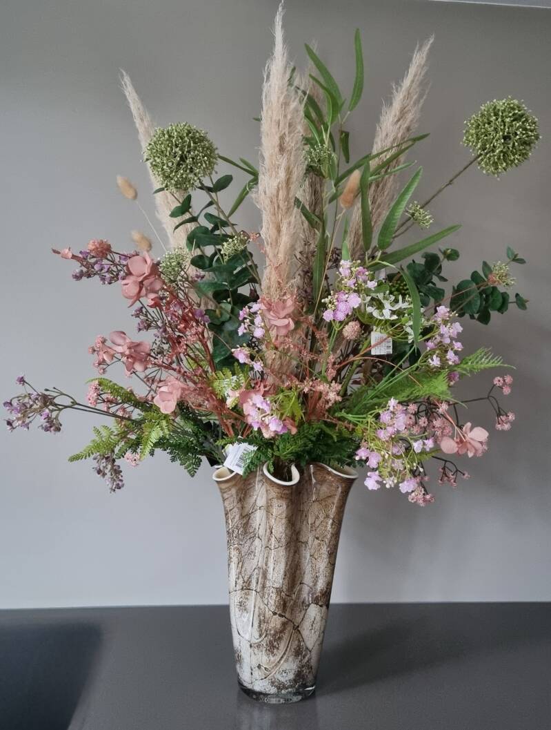 Deze Kunstbloemcreaties gemaakt in opdracht is ook mogelijk met een eigen vaas