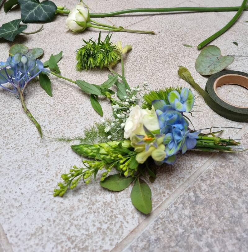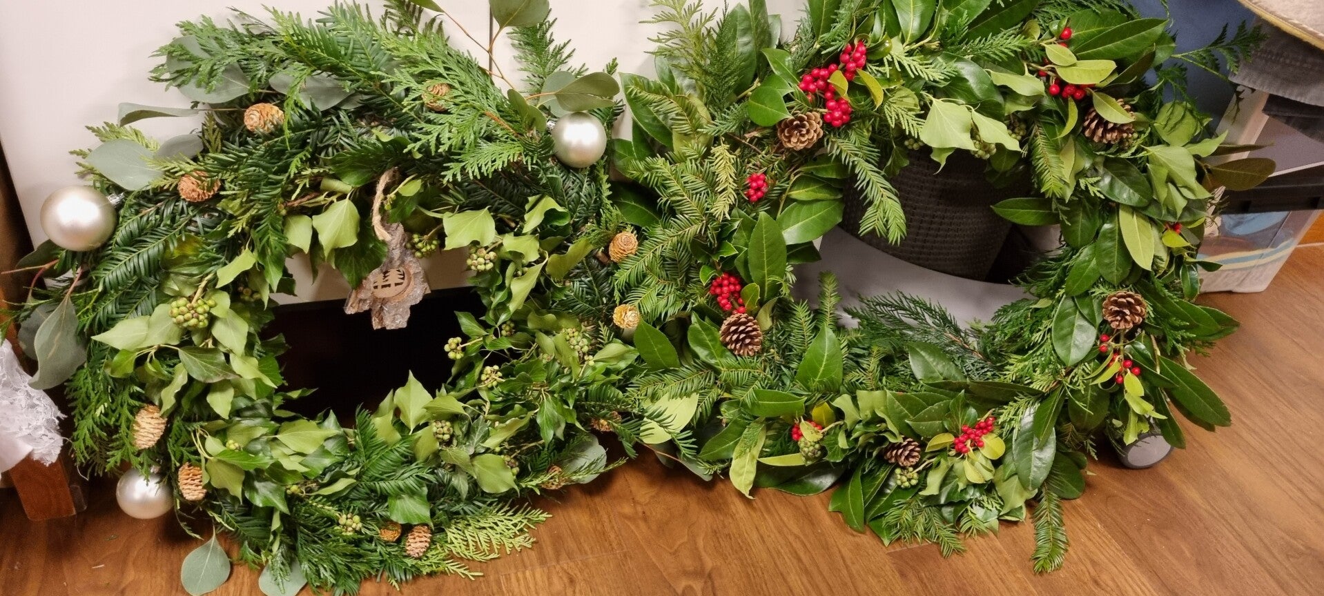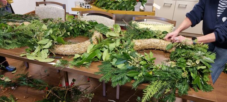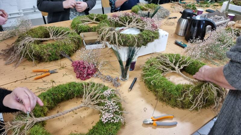 met uitleg en hard werken zijn er 10 prachtige kransen gemaakt.