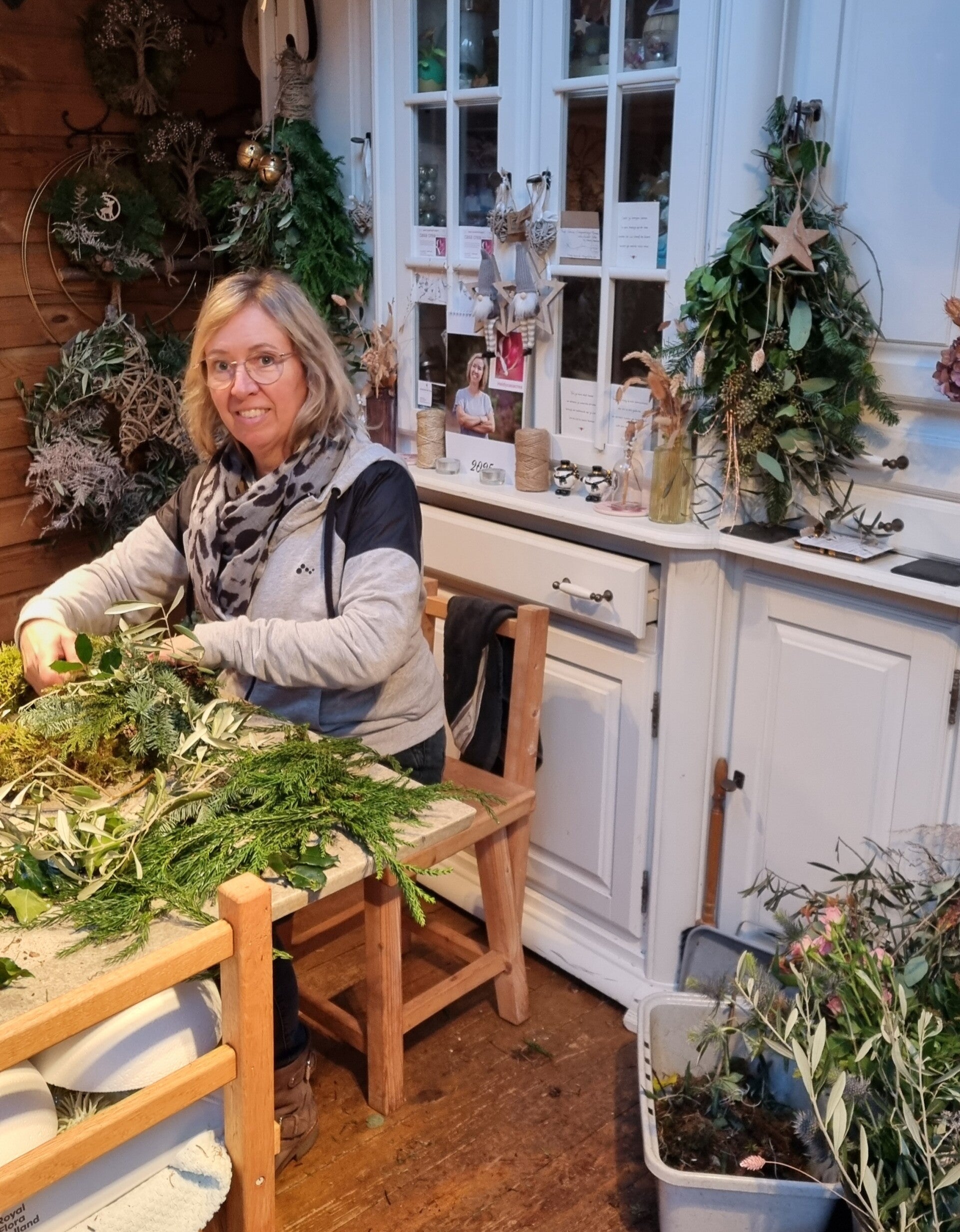 Maar hoe maak je zo'n krans op de goede manier. Dat was de vraag, Heidy kun jij deze groep begeleiden , Natuurlijk kan dat ook.